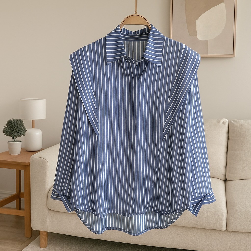 Femes Vella Shirt Top Atasan Kemeja Modern Kekinian Matt Katun Salur Fit To L XL Besar OOTD Korean Style