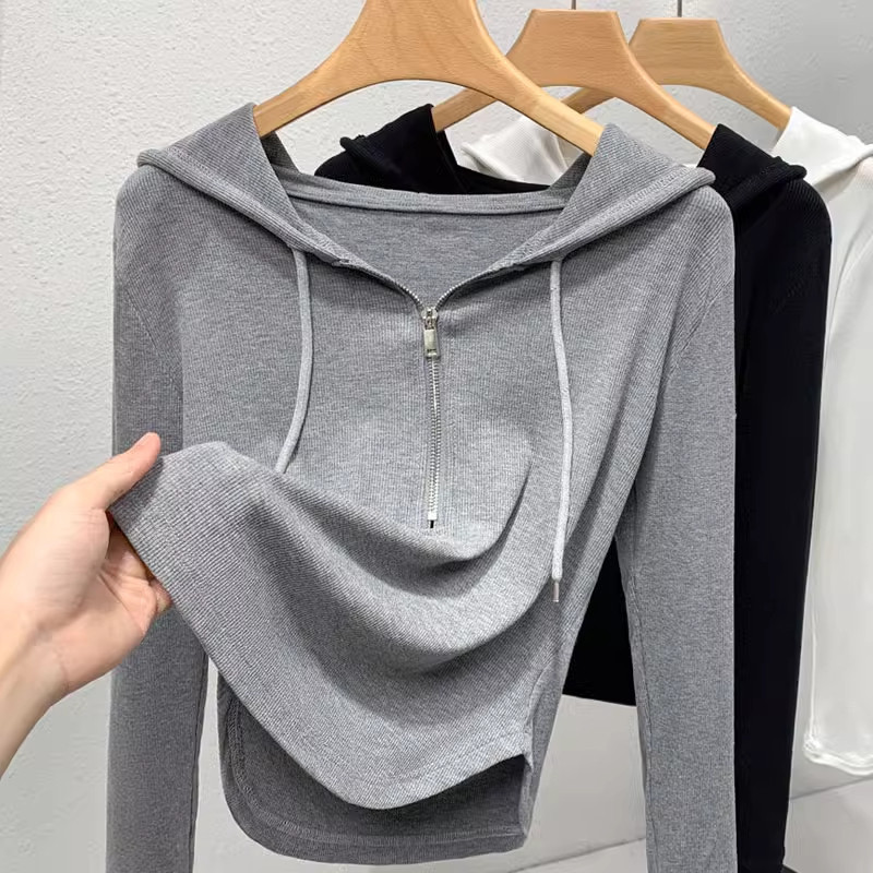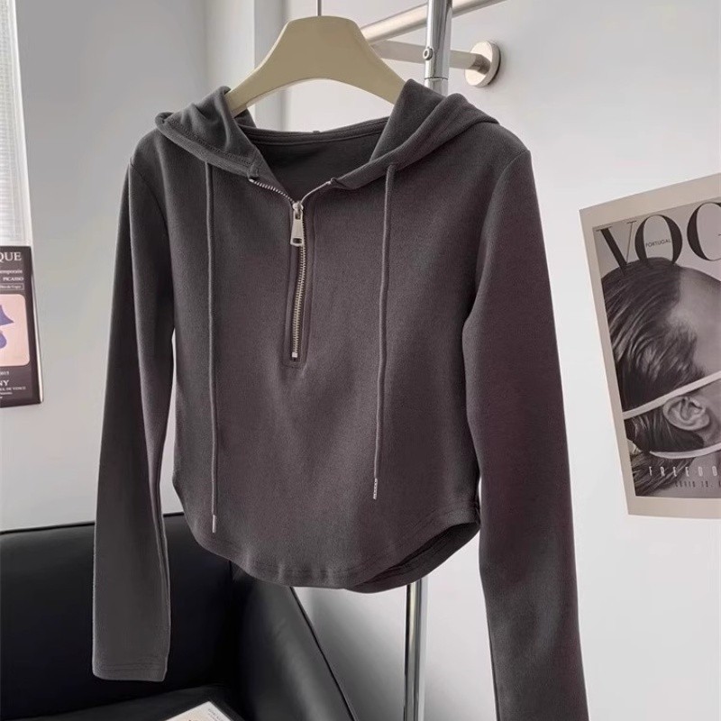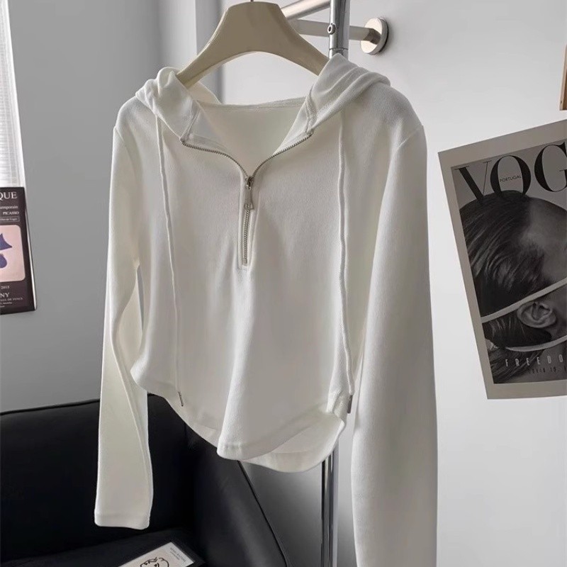 [Star]Hoodie Setengah Ritsleting Merah Muda Premium