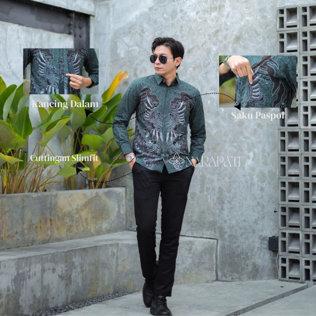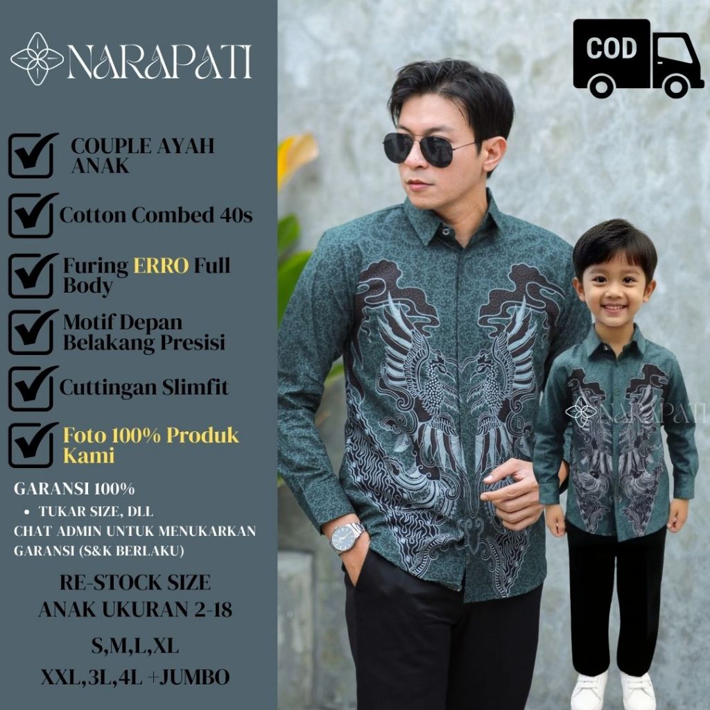 BATIK NARAPATI---KEMEJA BATIK COUPLE AYAH ANAK KEMEJA BATIK ANAK MUDA KEMEJA BATIK GEN Z Batik Premium Pria Slimfit Leng
