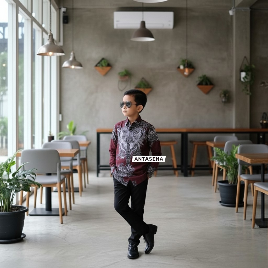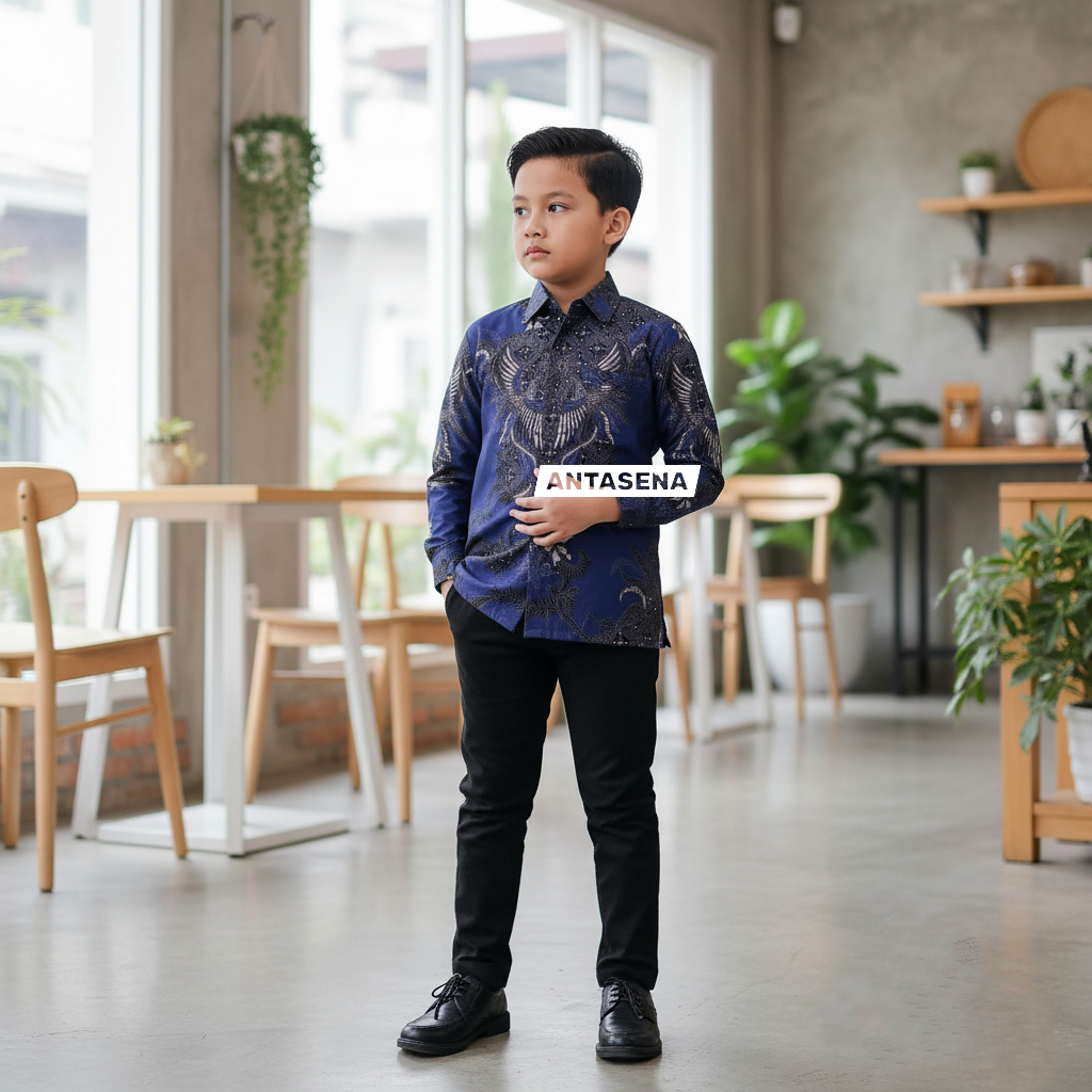 ANTASENA STYLE KEMEJA BATIK ANAK LAKI-LAKI BAJU BATIK ANAK LENGAN PANJANG UMUR 2-14 TAHUN KEMEJA BATIK ANAK COWOK KEMEJ