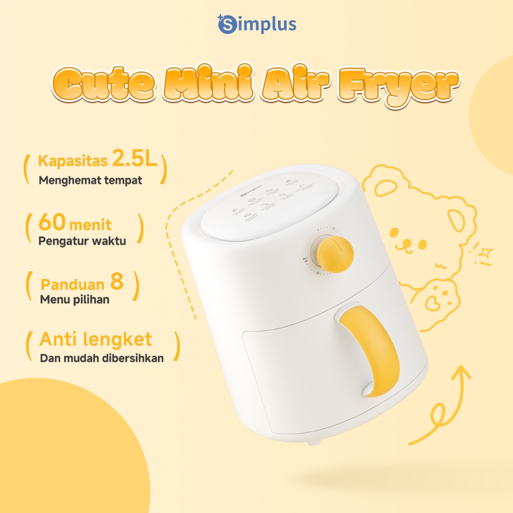 [Mall] Simplus Air Fryer Kapasitas 2,5L Mini & Ringkas Desain Hemat Tempat Rumah Tangga