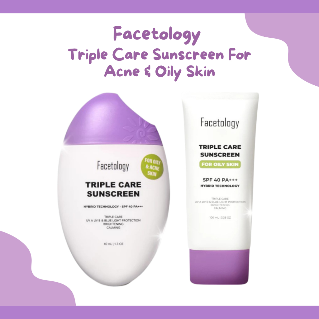 Facetology Triple Care Sunscreen For Acne and Oily Skin SPF 40 PA+++ 40ml and 100ml/Tabir Surya