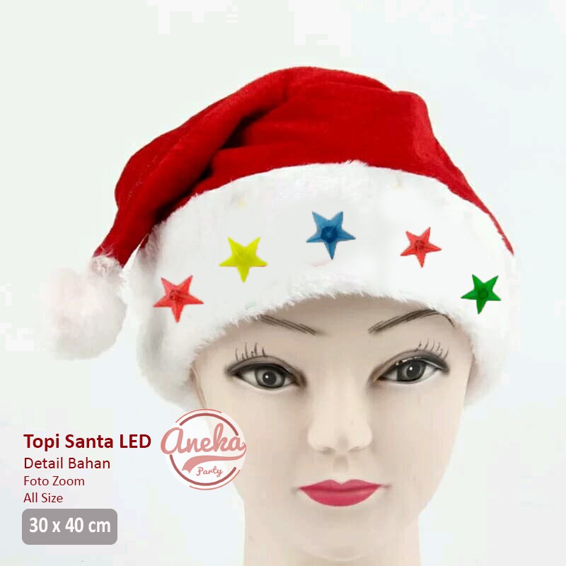 topi natal santa LED / aksesoris natal / topi santa nyala / hat merry christmas natal murah