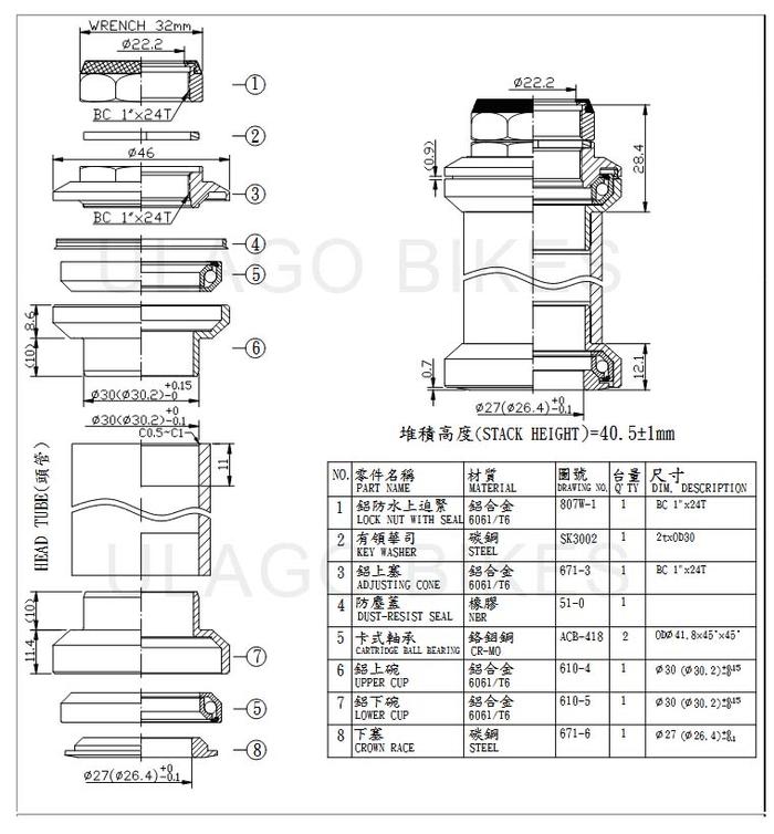 HEADSET NECO TAIWAN H671 BEARING SEPEDA 22.2MM KOM MANGKOK FORK GARPU - BLACK