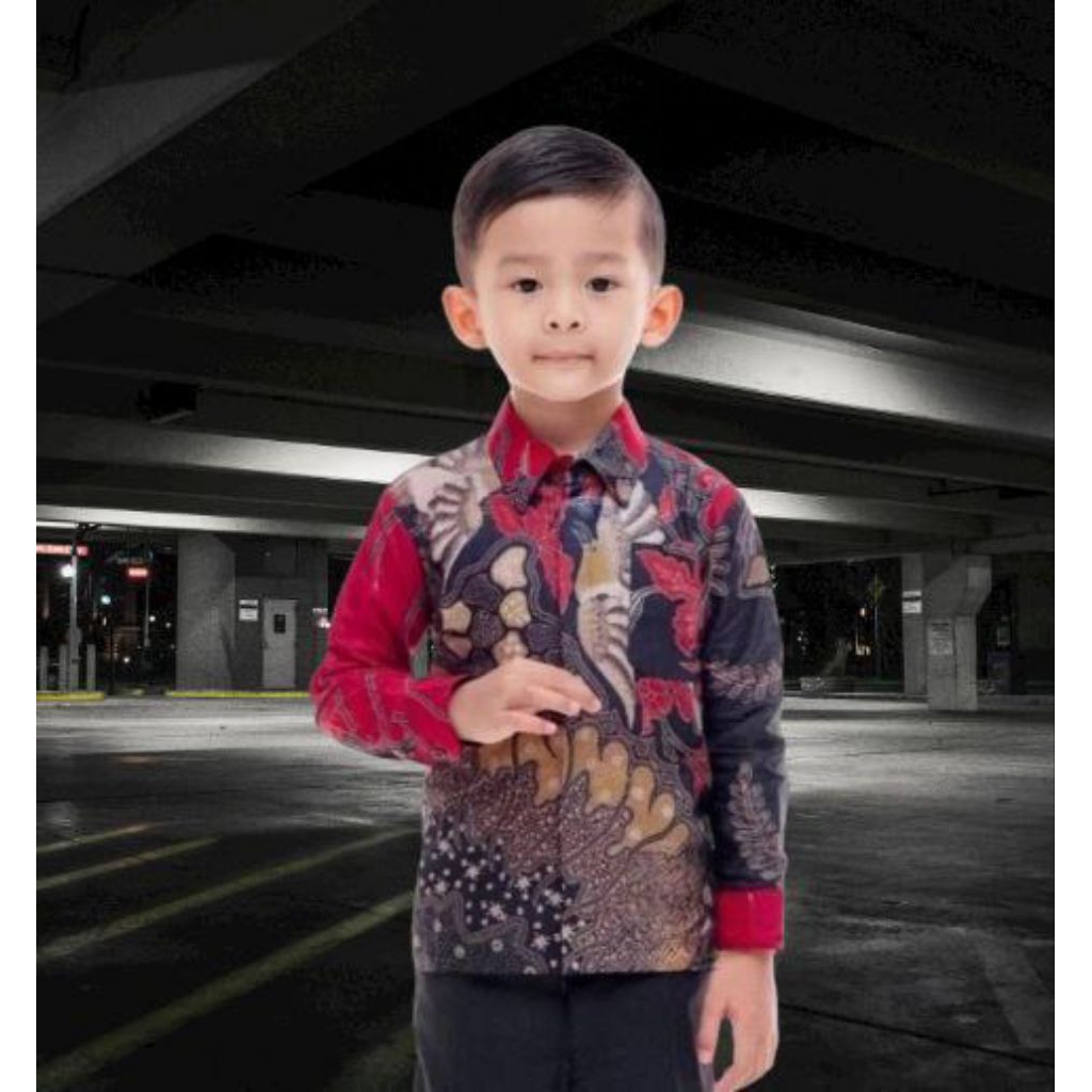 Kemeja Batik Anak Laki Laki lengan panjang modern-Seragam Batik Anak Laki-Laki Cowok Terbaru Usia 2-13 tahun
