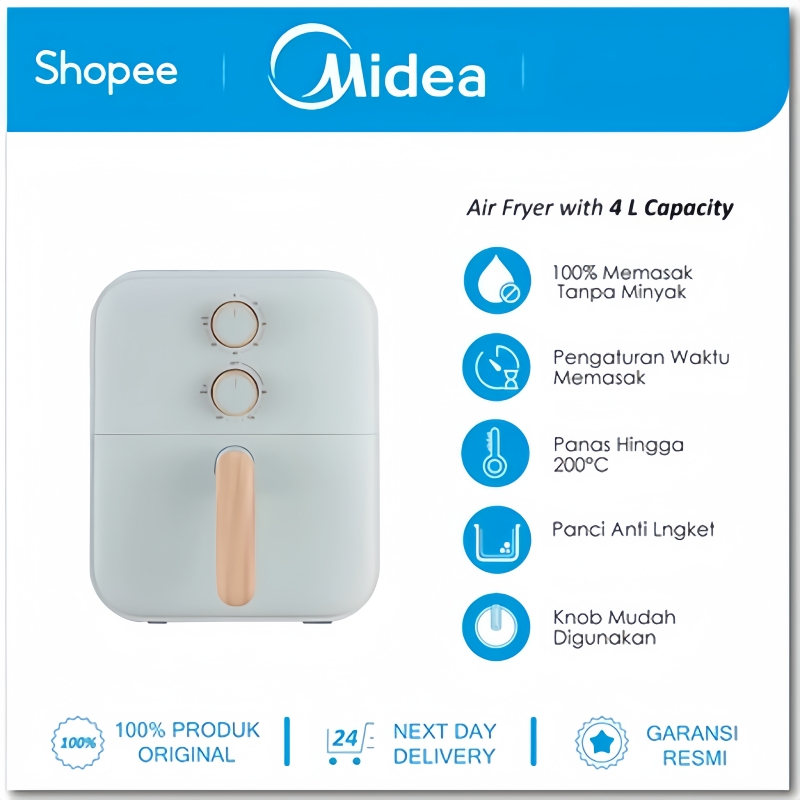 [Mall] Midea Airfryer Watt Model Putar Pegangan Kayu MAF400B0ADG