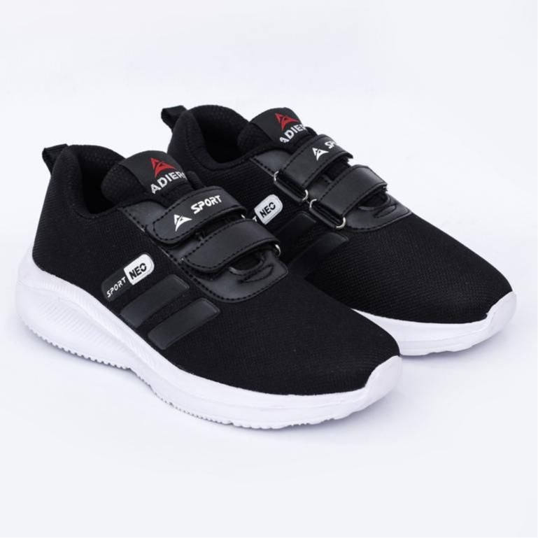 Adiero Sepatu Sekolah Anak Laki & Perempuan Sneakers Velcro Original Warna Hitam Putih size 28 - 40