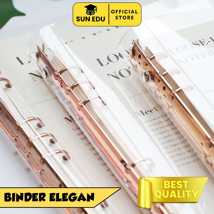 Elegant Binder A5 Transparan Binder with Clip Note Book Loose Leaf Rose Gold Binder
