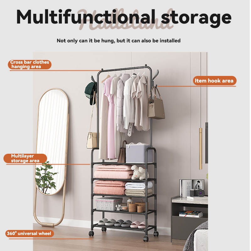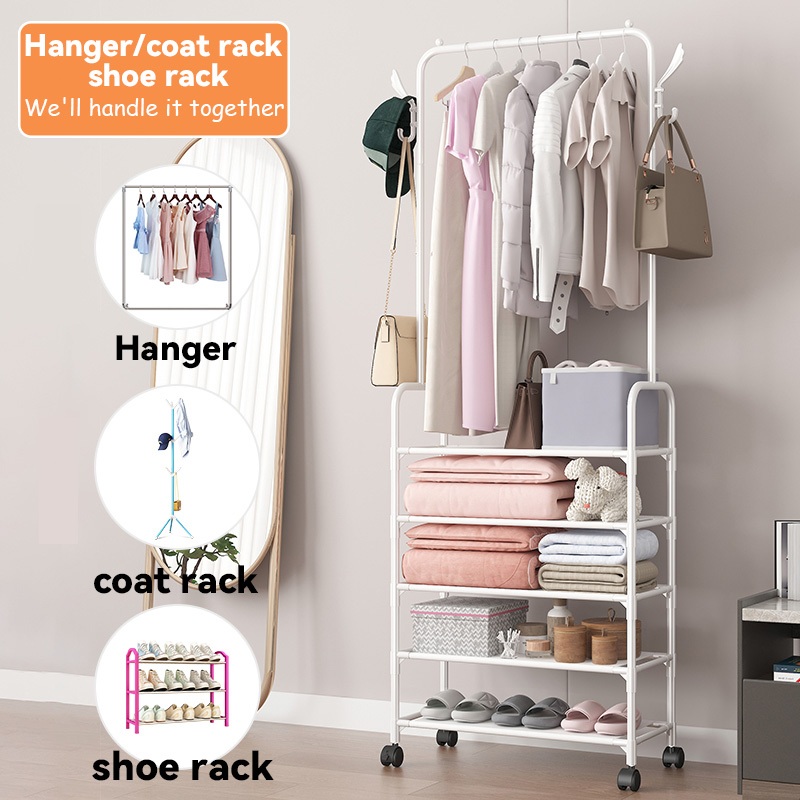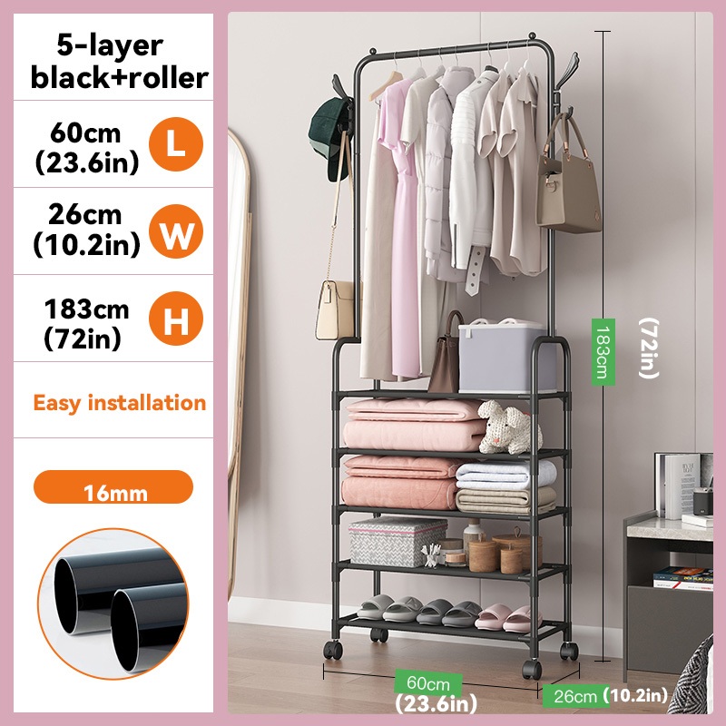 Rak Sepatu 5 Susun Dengan Rol Gantungan Baju Tempat Penyimpanan Gantung Pakaian Rak Topi Tas Rak Serbaguna Jaket