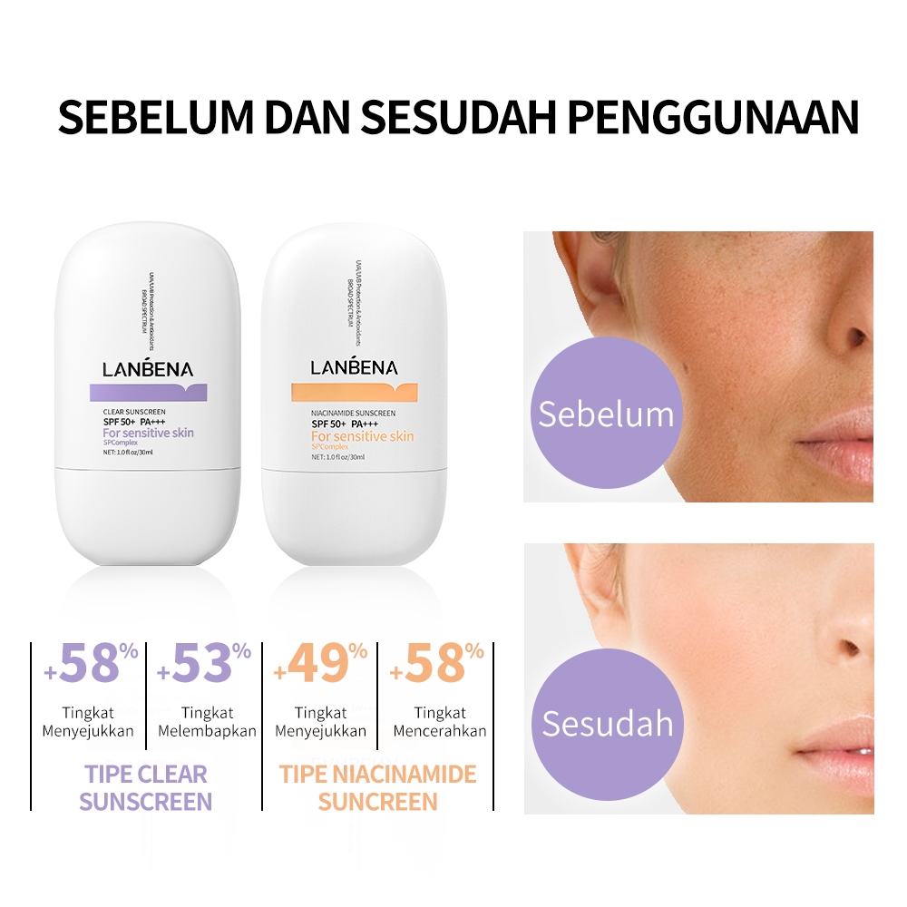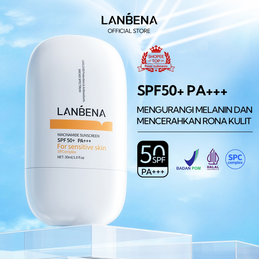 LANBENA Niacinamide Whitening Skin SPF 50+ PA+++ - Tabir Surya Fisik yang Melindungi dan Mencerahkan Kulit Sensitif