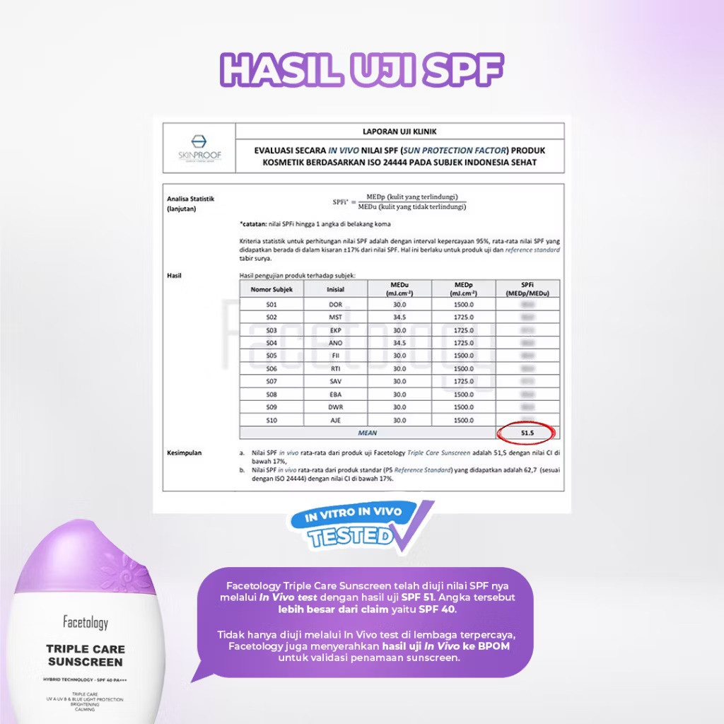 FACETOLOGY Triple Care Sunscreen Hybrid Technology SPF40 PA+++