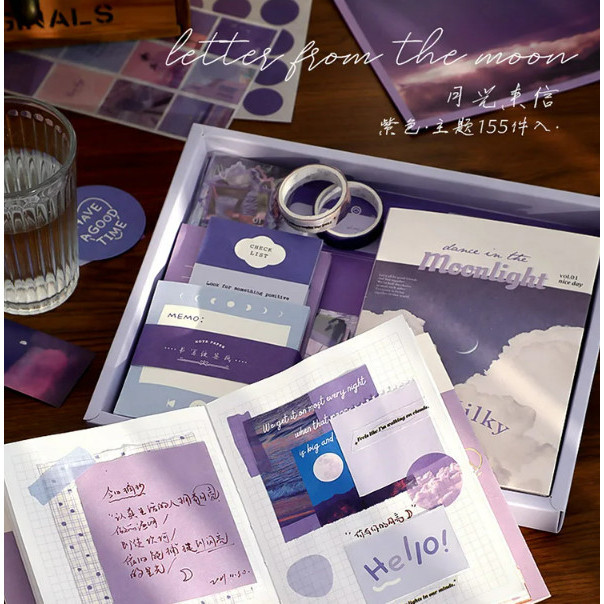 SCRAPBOOK SET JOURNAL KIT Lengkap Isi 155 Pcs Include Buku + Sticker + Memo + Washi Tape Perlengkapan Journal