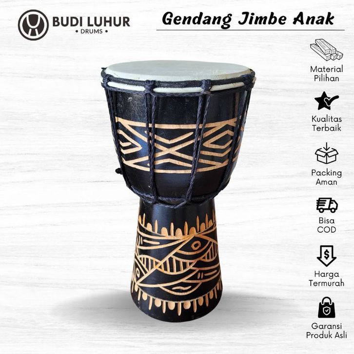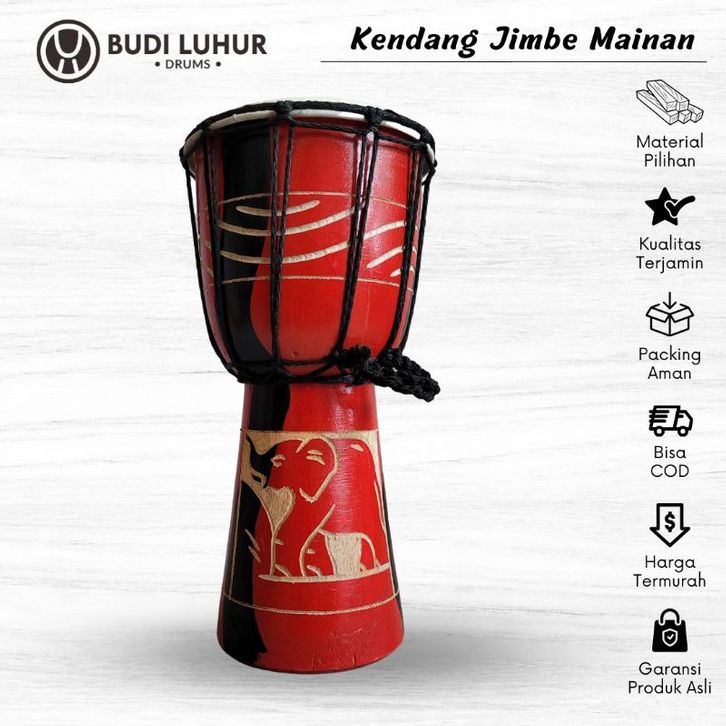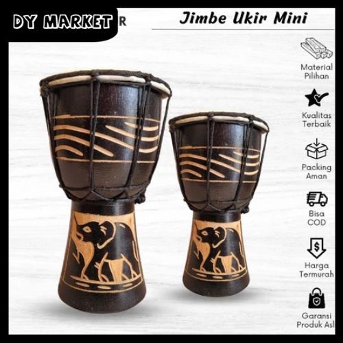 Mainan Kendang Jimbe Mini Alat Musik Gendang Jimbe Anak Kecil Motif Ukir untuk Hiasan Souvernir