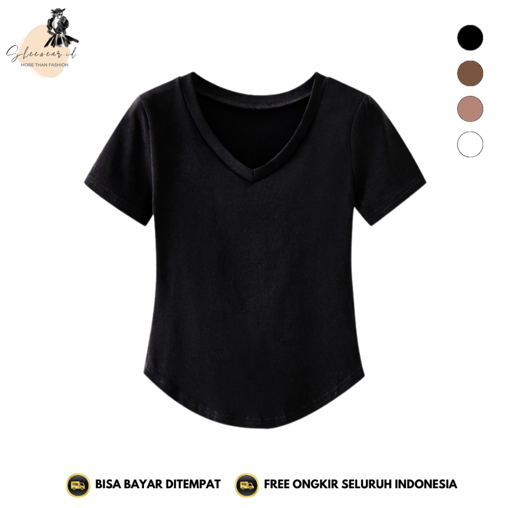 SHEEWEAR - 480 Kaos V-neck Atasan Bahan Lembut Fashion Wanita Gaya Korea