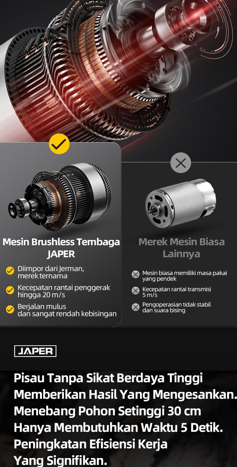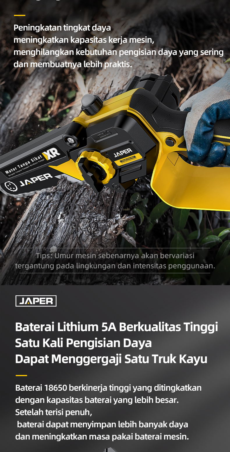 JAPER Mesin Chainsaw Cordless Gergaji Baterai Gergaji Rantai Elektrik Mini Gergaji Listrik