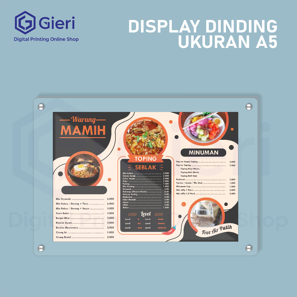 Gieri - Display Dinding Akrilik / Frame Akrilik / Stand Poster Akrilik