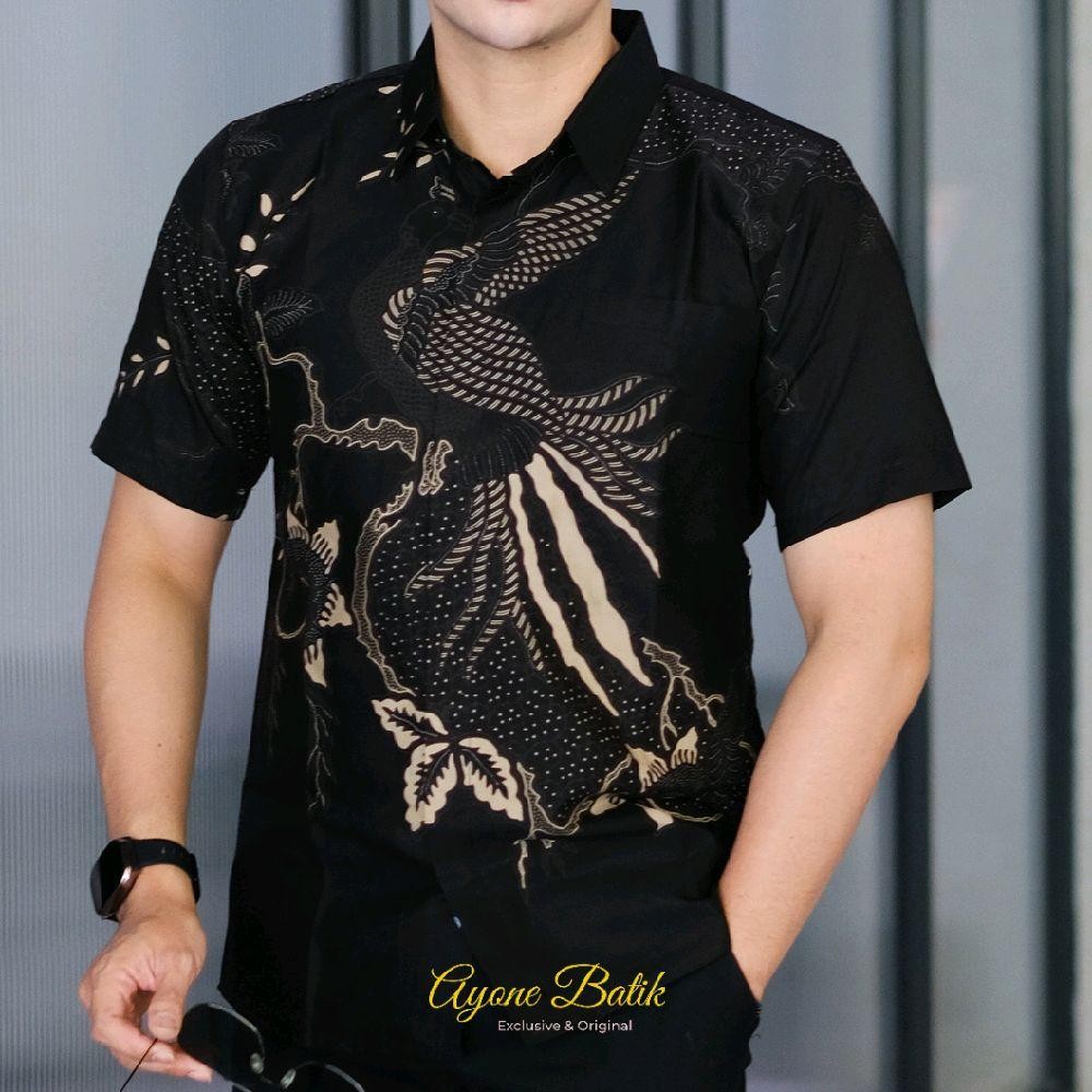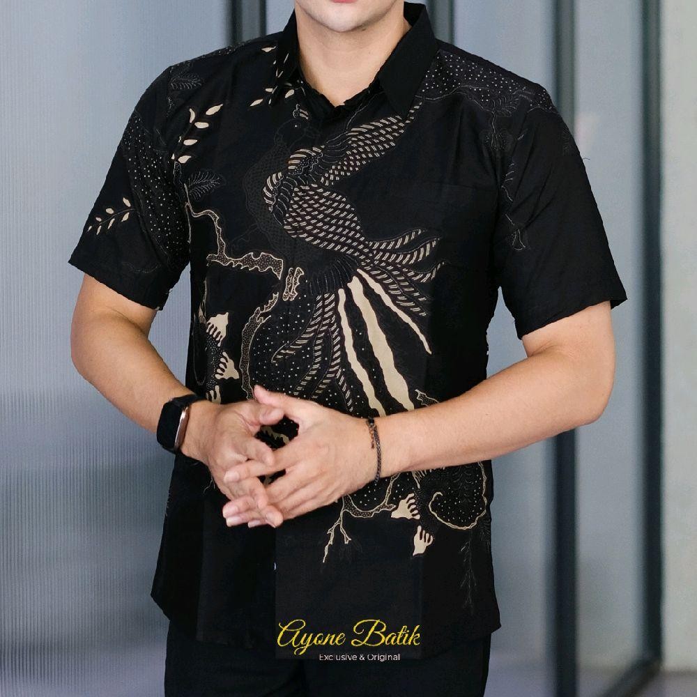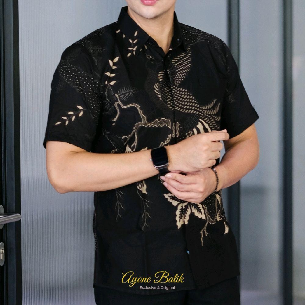 AyoneBatik Hem Batik Pria Terbaru Lengan Pendek Panjang Motif EMPRIT HITAM Batik Cowok Lengan Pendek Kekinian Warna Hita