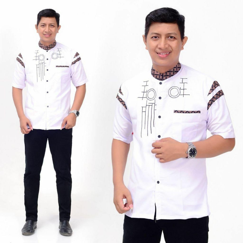 Baju Koko Muslim Pria Lengan Pendek Kombinasi Batik Dan Bordir Bahan Katun Original Adem Halus Kemko Dewasa Terlaris