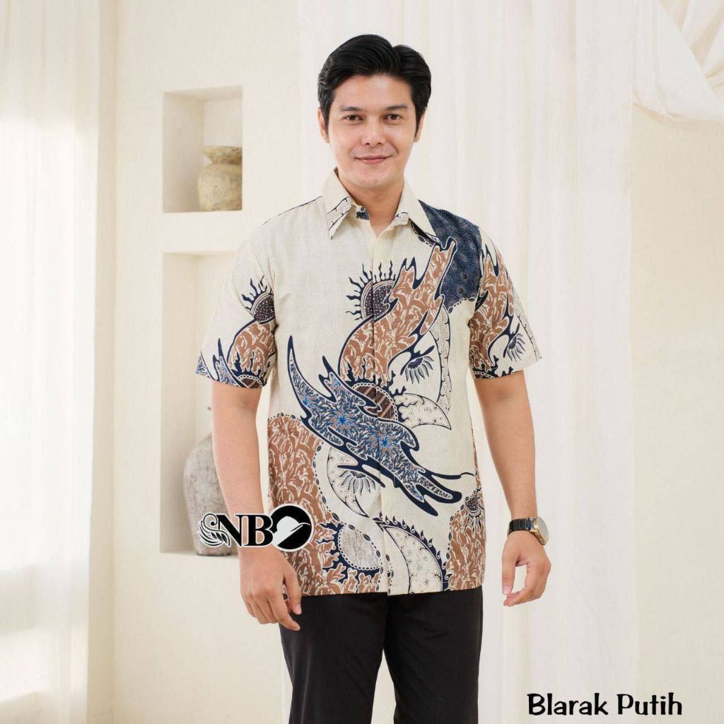 Kemeja Batik Pria Lengan Pendek Premium Katun Putih Kekinian
