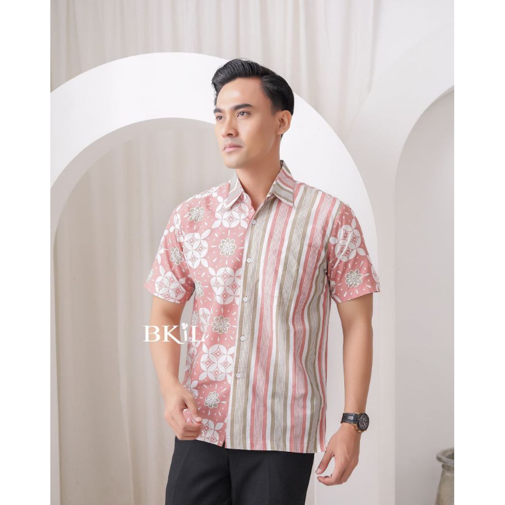KAWUNG SALUR Kemeja Batik Pria Lengan Pendek Premium Modern Casual Katun Warna Pastel M L XL XXL