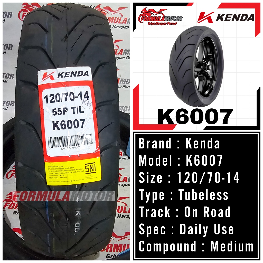 Kenda K6007 Ring 14 Tubeless All Size - Ban Tubles Motor PCX, Aerox 100/80, 110/80, 120/70, 140/70