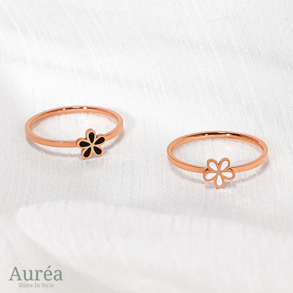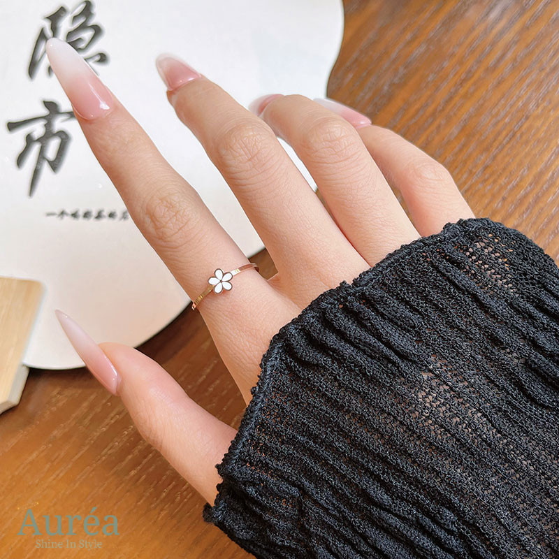 Cincin Titanium Wanita Bunga Simple Anti Karat Kepribadian Korea