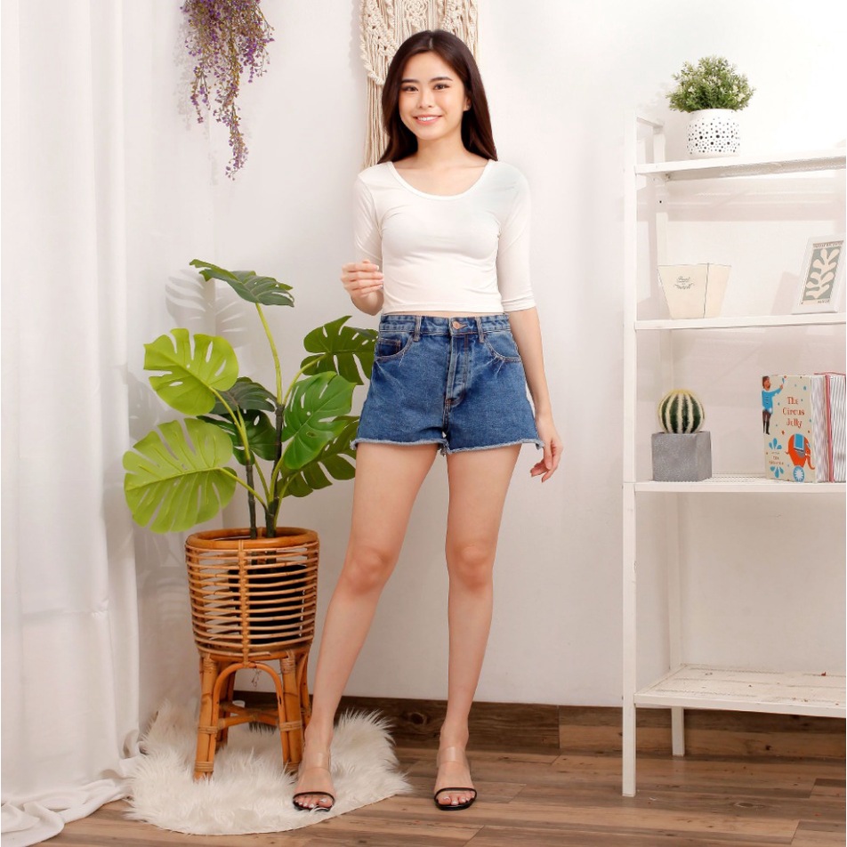 CAVALU Korean Sexy Crop Top Kaos Lengan 34 Baju Atasan Wanita 085