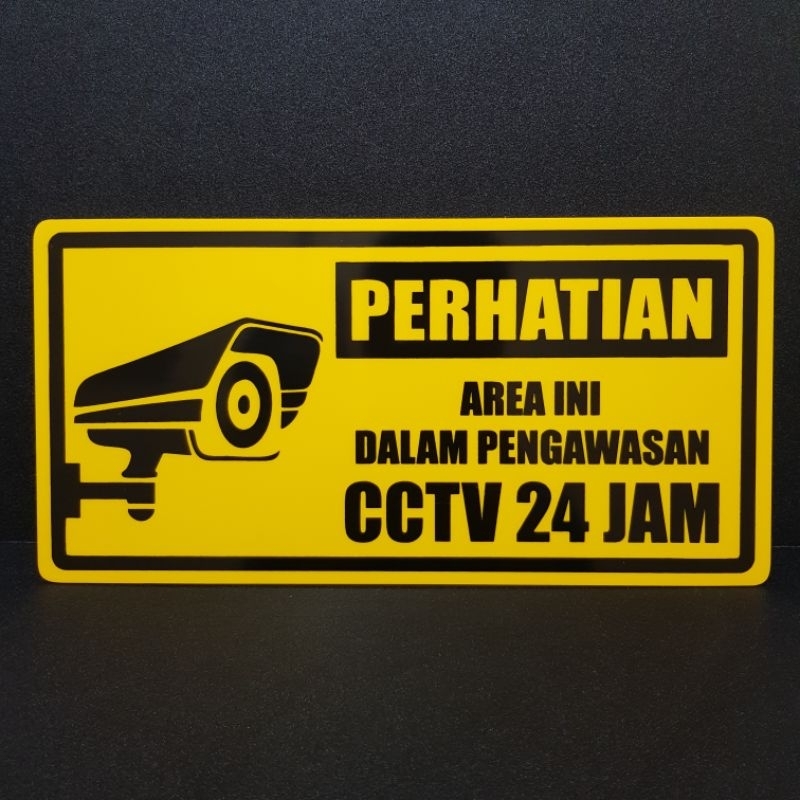 Akrilik Sign PERHATIAN - AREA INI DALAM PENGAWASAN CCTV 24JAM bahan full acrylic tebal 2mm