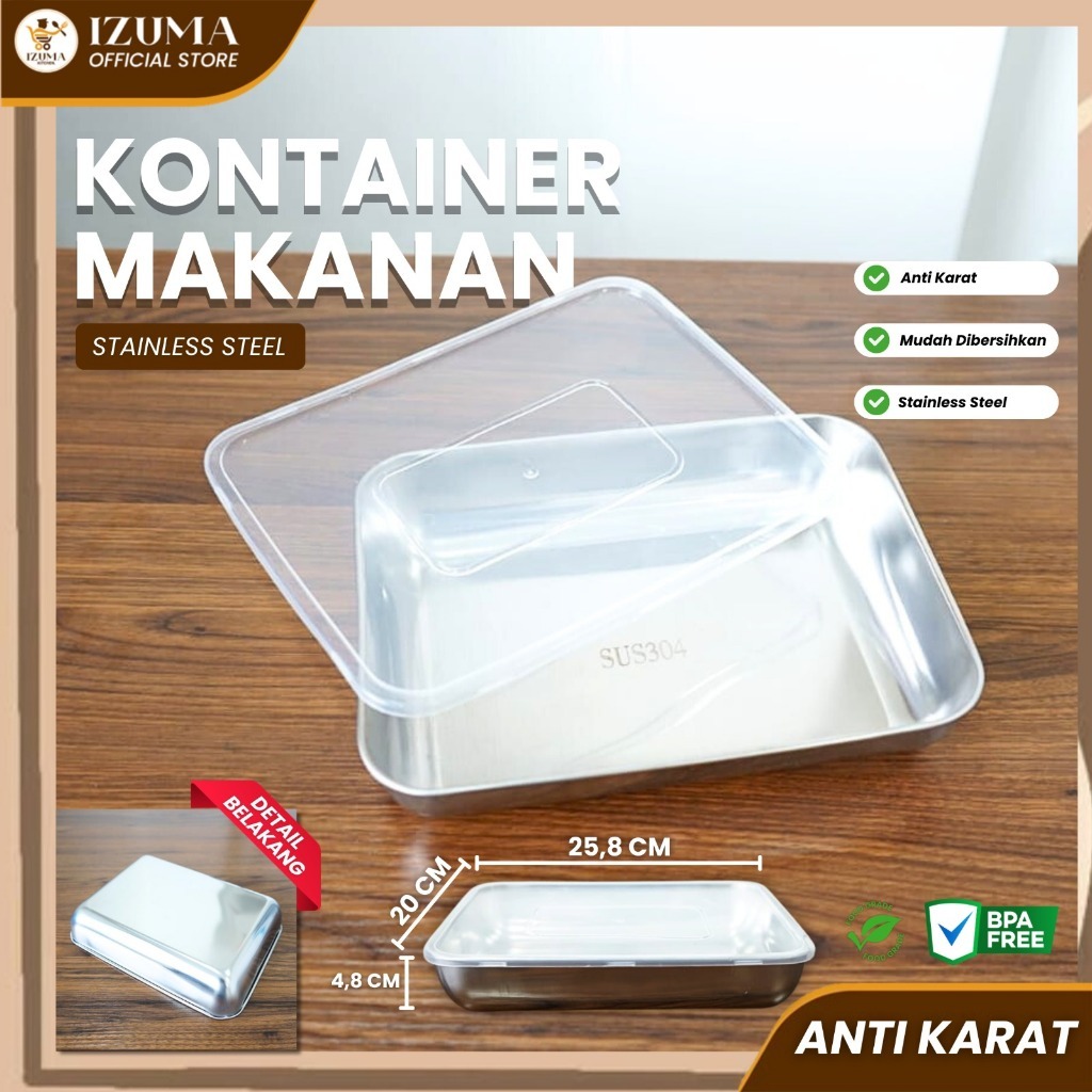 [Star] IZUMA Food Box Stainless Persegi Tempat Makan Food Grade + Tutup Aman Microwave Cocok Bekal & Food Prep