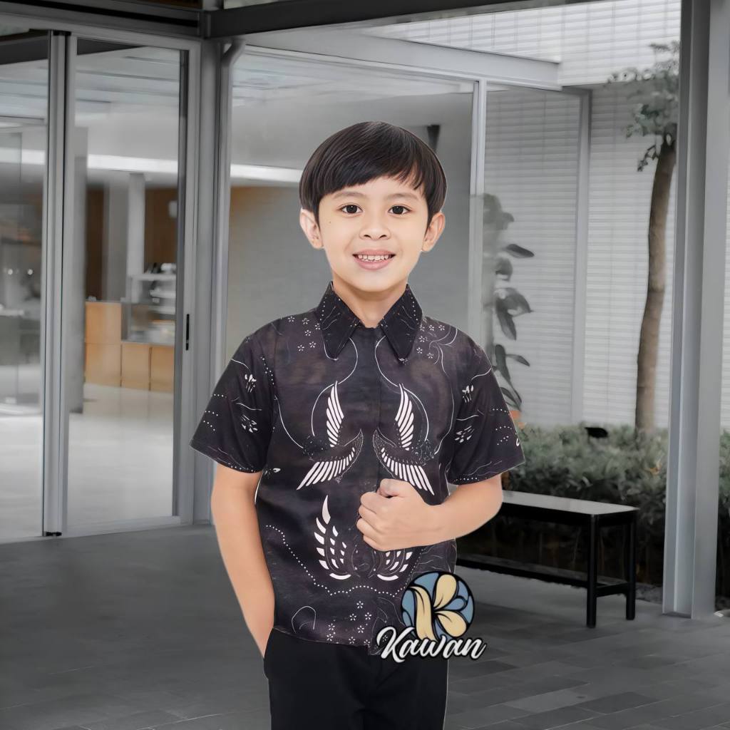 Kemeja Batik Anak Lengan Pendek Bahan Katun Poly Usia 2 Tahun Sampai 13 Tahun