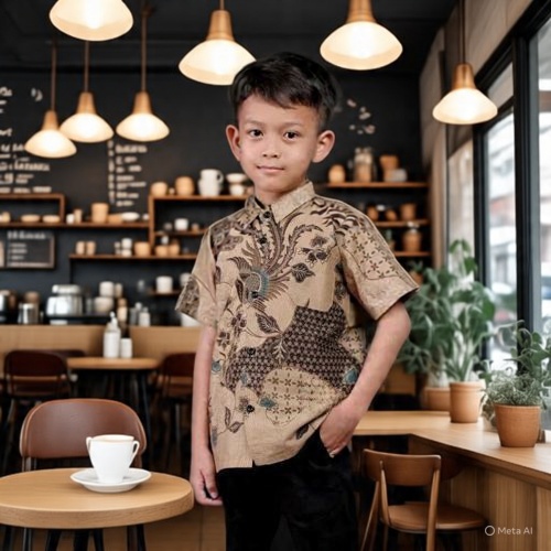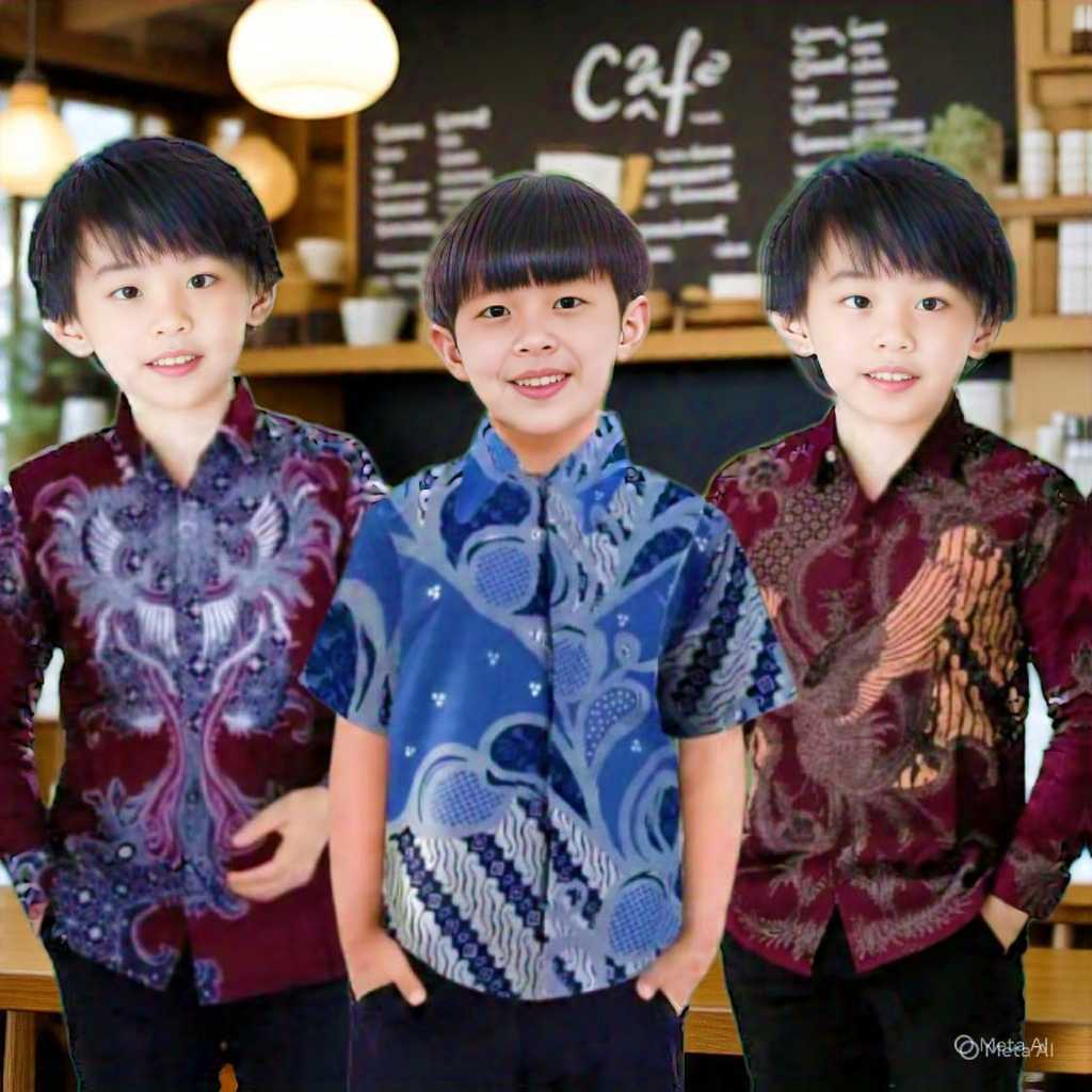 kemeja Batik Anak Laki - Laki Modern Lengan Panjang dan Pendek Usia 2 - 13 Th Ukuran M L XL XXL Bahan Adem Halus Lembut