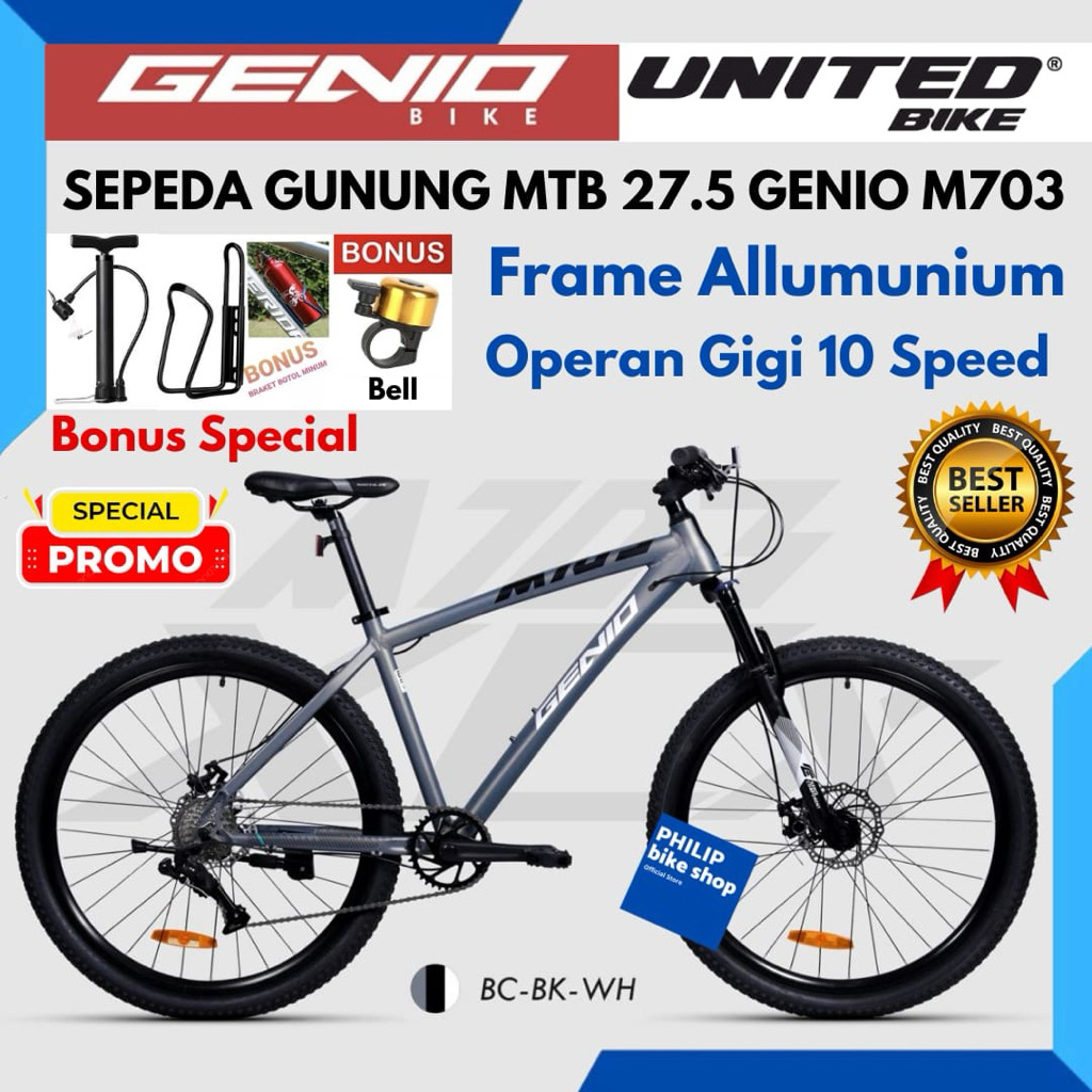 Sepeda Gunung 27.5 MTB Genio M703 Frame Allumunium 10 Speed Terbaru