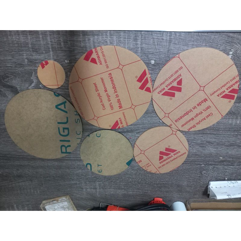 Acrylic dengen ketebalan 2mm. Diameter 80cm,70cm, 60 ,cm ,50cm,30 cm Bulat,warna putih susu ,hitam,bening