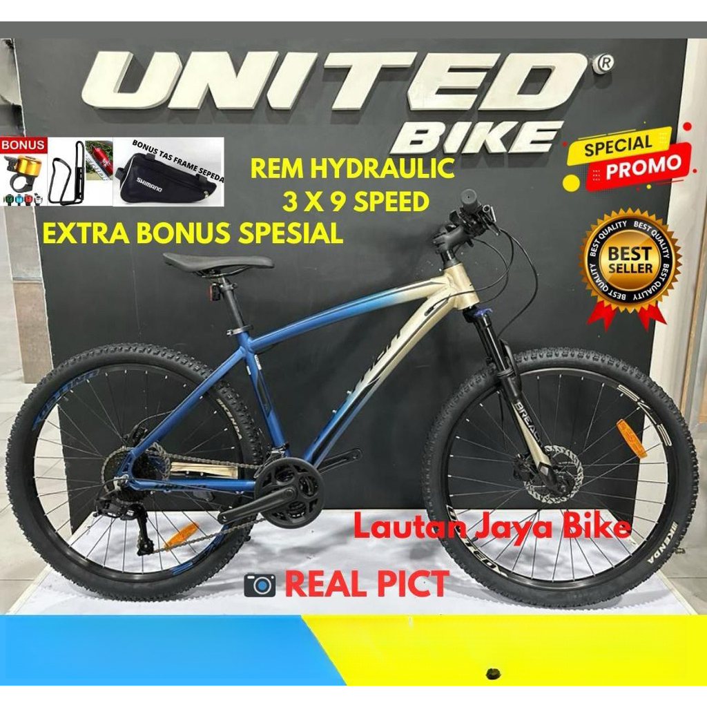Sepeda Gunung 27.5 MTB UNITED DETROIT 2.0 Frame Alumunium 3x9 Speed Rem Hidrolik Terbaru