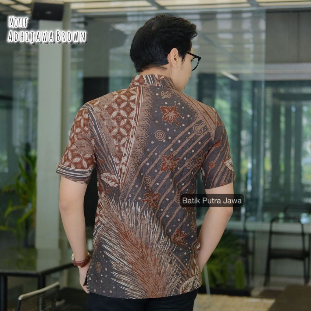 Kemeja Batik Slimfit Pria Lengan Pendek Bahan Katun Lapis Furing Nyaman Motif ADHIBROWN