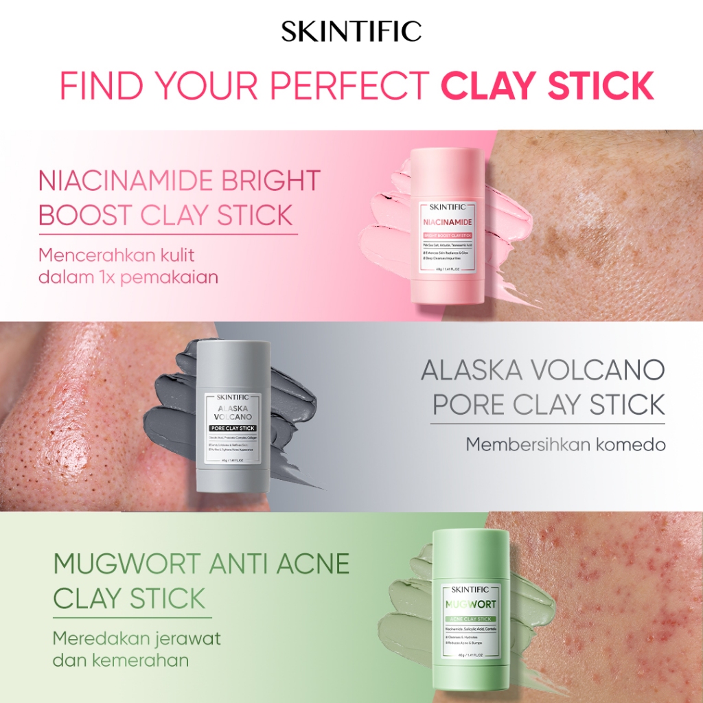 [SKINTIFIC AUTHORIZED] Clay Mask Stick Collection Kit Masker Wajah -Mugwort Acne Clay Stick 40g & Alaska Volcano Clay Ex