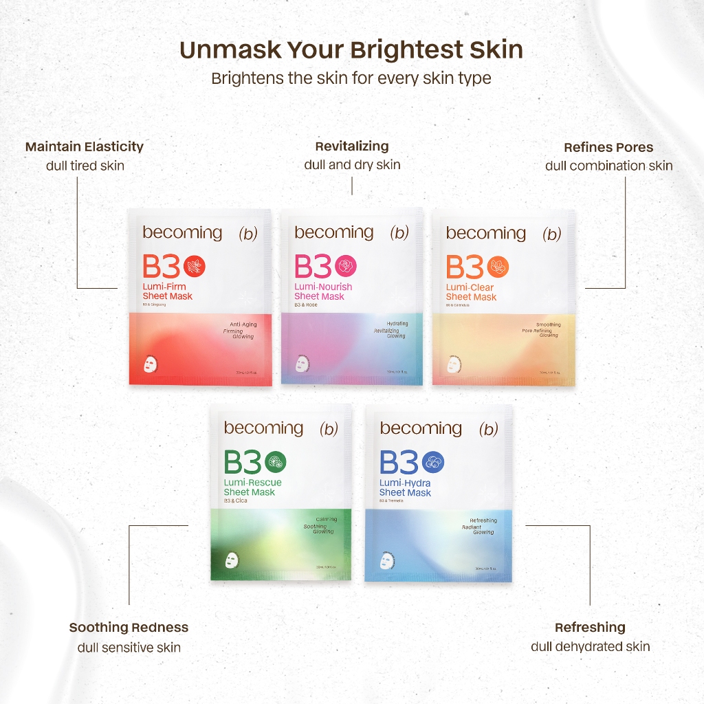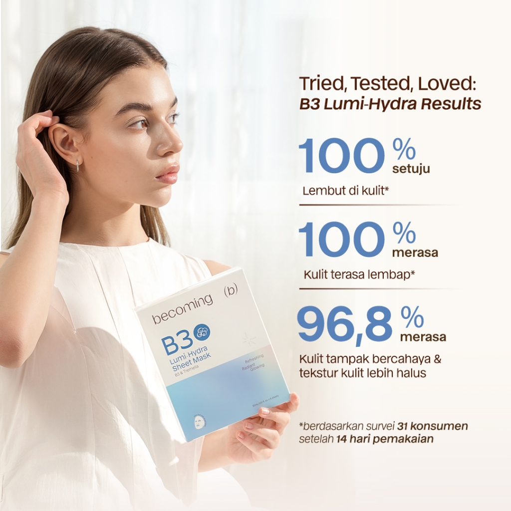 [HOT SALE] becoming B3 Lumi-Hydra Sheet Mask 30ml 2% Niacinamide | Masker Wajah | Sheet Mask | Face Mask | Mencerahkan d