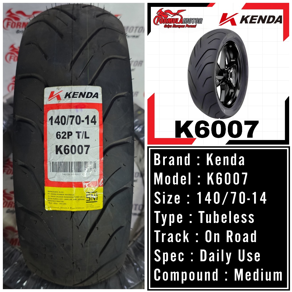 Kenda K6007 Ring 14 Tubeless All Size - Ban Tubles Motor PCX, Aerox 100/80, 110/80, 120/70, 140/70