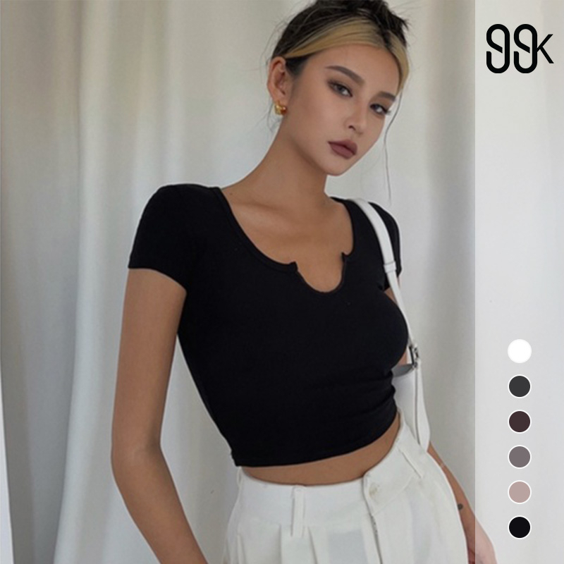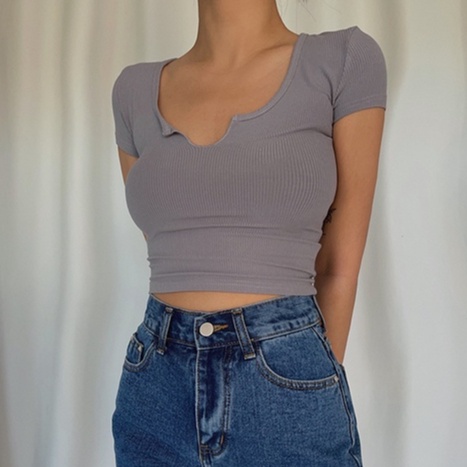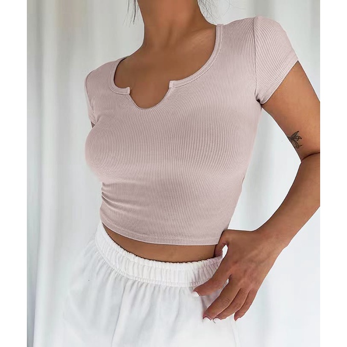 Premium V-Neck Short Sleeve Ribbed Crop Top T-Shirt 7281 SML