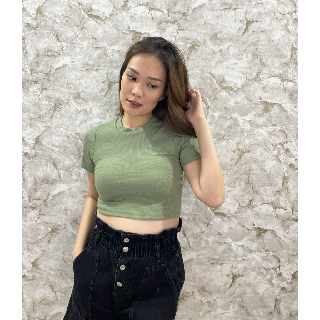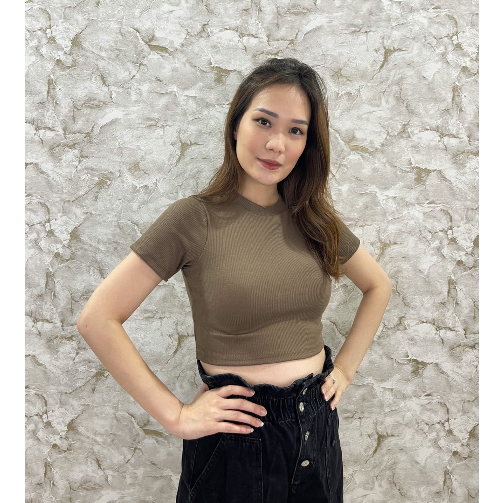 MODAVIE - CLAY Crop Top Korea Knit Crop Tee Korean Style Kaos Wanita