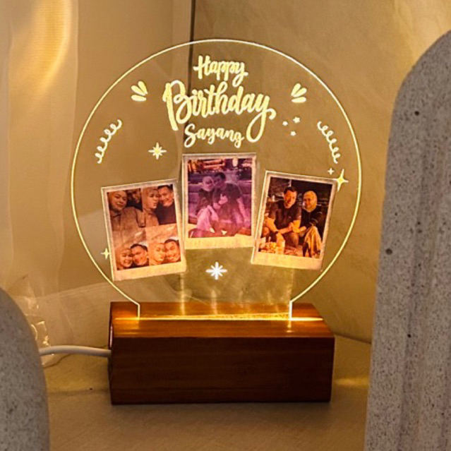 GIFT AKRILIK CETAK FOTO STIKER POLAROID LAMPU HADIAH ULTAH / KADO CEWEK / KADO WISUDA / KADO ANNIVERSARY / KADO VALENTIN