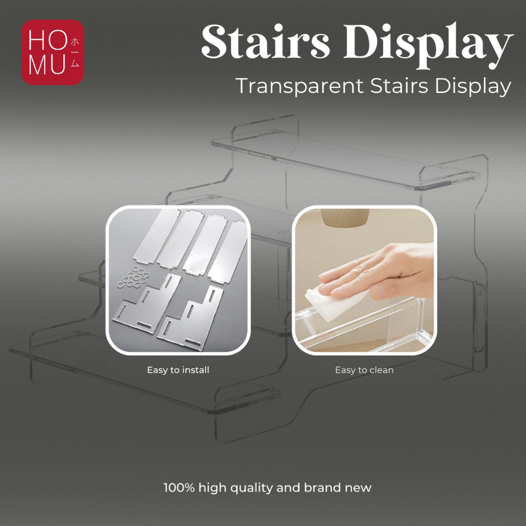 HOMU Stairs Display Transparent Acrylic Action Figure Stand 4 Susun Tingkat Rak Pajangan Akrilik