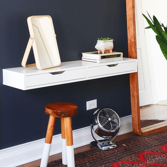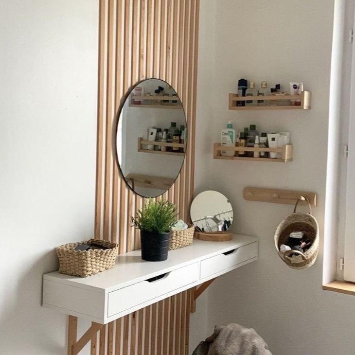 Rak Kosmetik Tempel Dinding 80x20cm dengan 2 Laci Penyimpanan Ambalan Gantung Dekorasi Kamar Minimalis