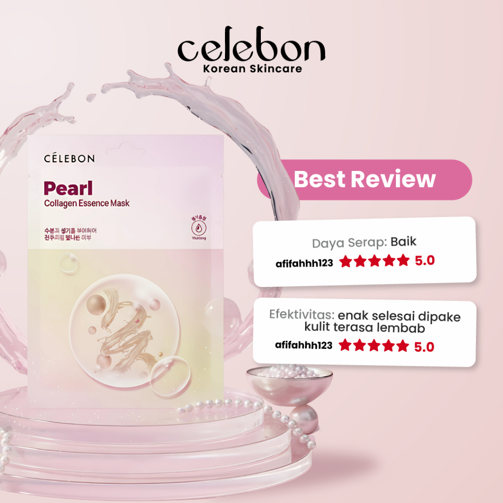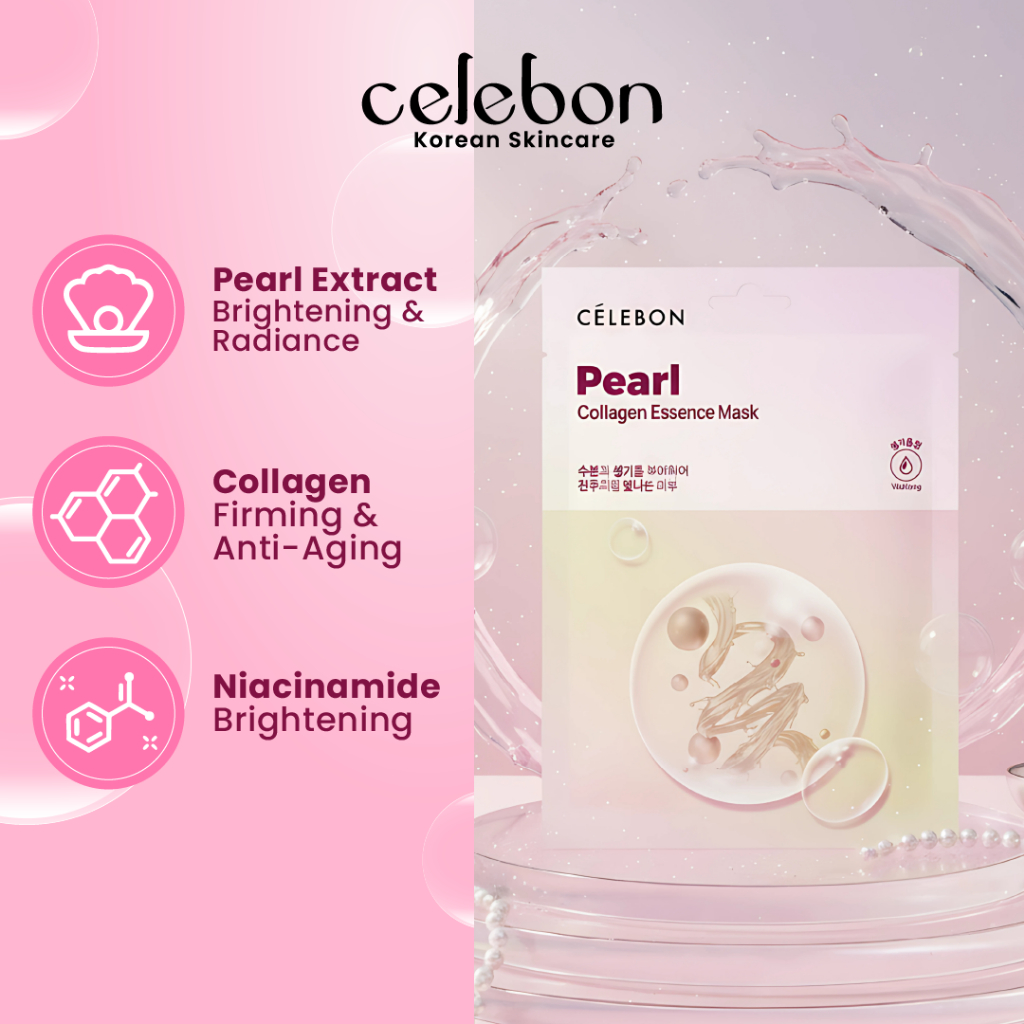 CELEBON - 10PCS Bundle Pearl Essence Collagen Mask | Masker Wajah Mencerahkan dan Glowing
