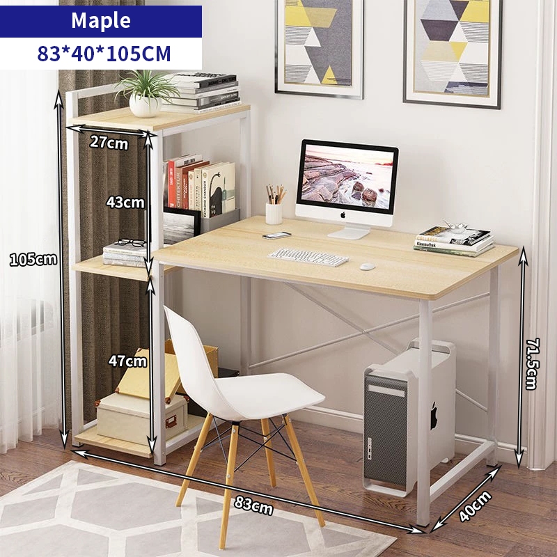 E-TIFE Meja Belajar Minimalis Meja Belajar Dengan Rak Buku Meja Kerja Dengan Rak Serbaguna (H Table)