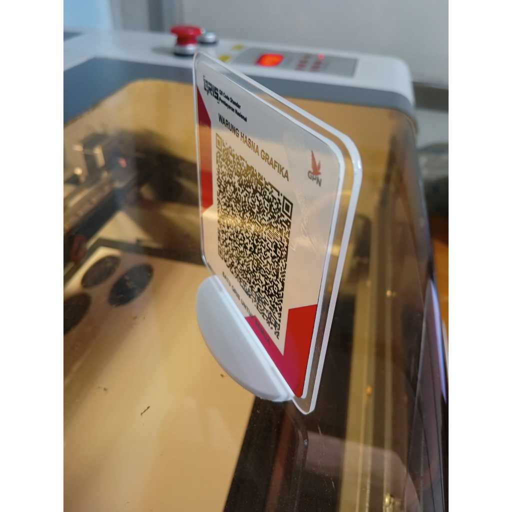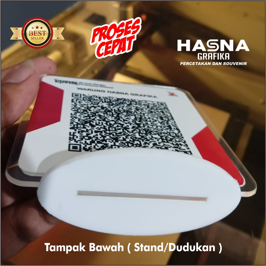 CETAK QRIS PLUS DUDUKAN / STAND AKRILIK QRIS / CETAK QRIS PLUS AKRILIK