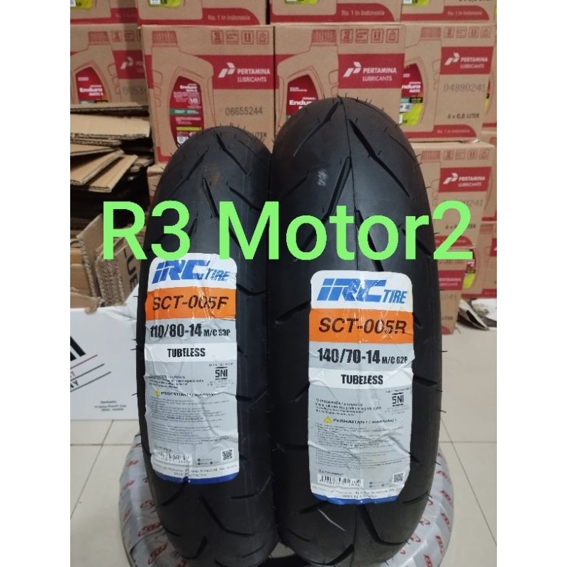 PAKET BAN TUBELESS AEROX depan belakang IRC 110/80-14 SCT-005F dan 140/70-14 SCT-005R kembang bawaan motor gratis pentil