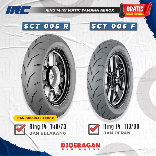 SEPASANG / SATUAN BAN MOTOR AEROX IRC Ring 14 SCT 005 Ring 14 110/80 140/70 TUBELESS