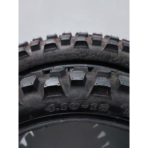 BAN SET KLX IRC PIRELLI 18 21 DEPAN BELAKANG UKURAN 275 21 DAN 410 18 BARANG BARU TANPA BUNGKUS COCOK UNTUK MOTOR KLX CR