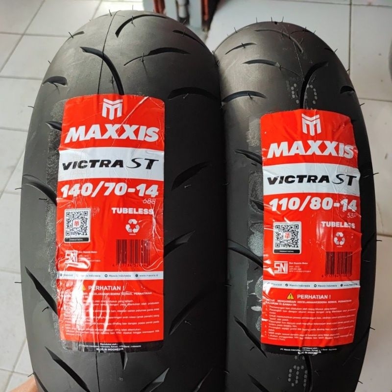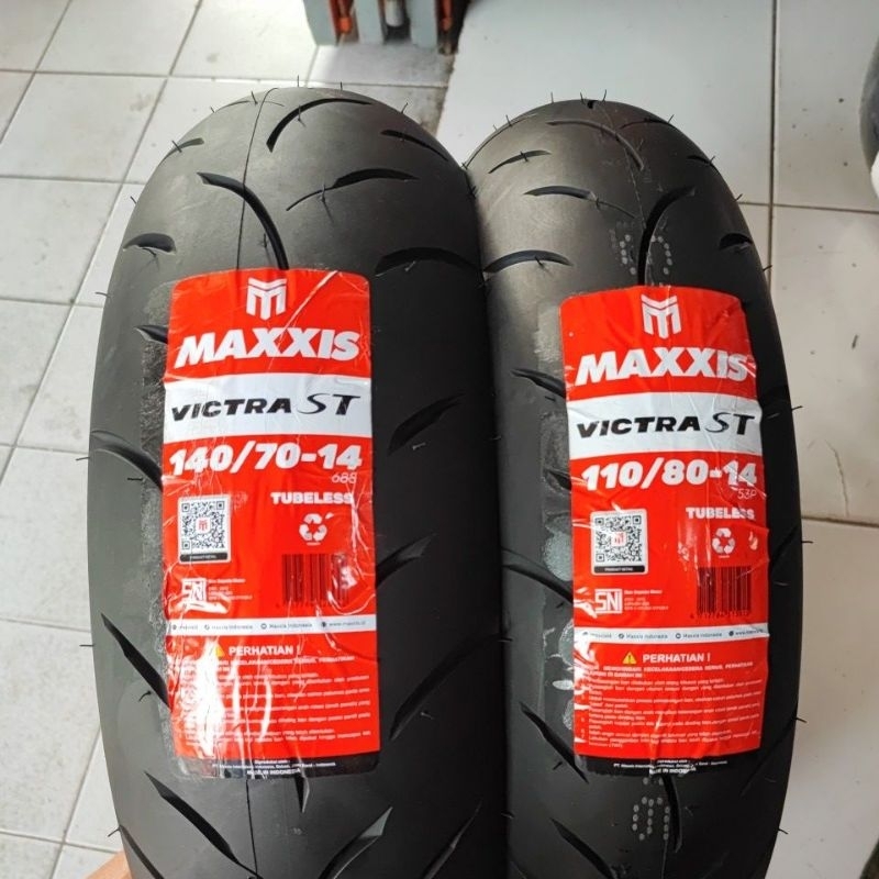 ( PAKET 2 BAN RING 14 AEROX ) Maxxis Victra ST AEROX 110/80-14 & 140/70-14 tubles Murah Free Pentil Karet + Full wrappi